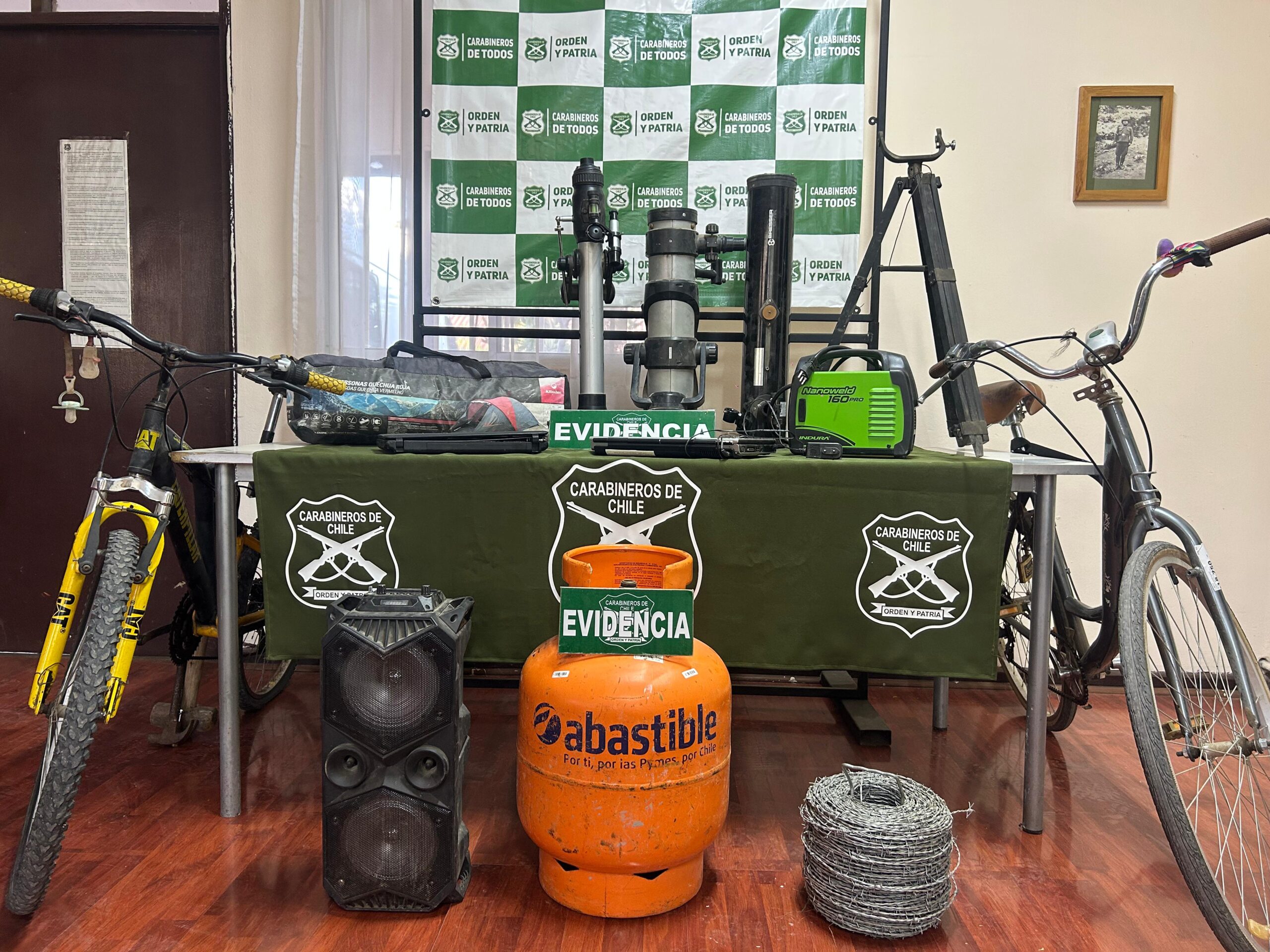 Además, el trabajo investigativo permitió recuperar casi dos millones de pesos en especies, que habían sido sustraídas de distintas casas del sector de Campana el pasado 22 de diciembre. Entre ellas, elementos para construcción, un parlante de música, dos notebooks, un telescopio y dos bicicletas. Todas, las cuales fueron devueltas a sus propietarios.